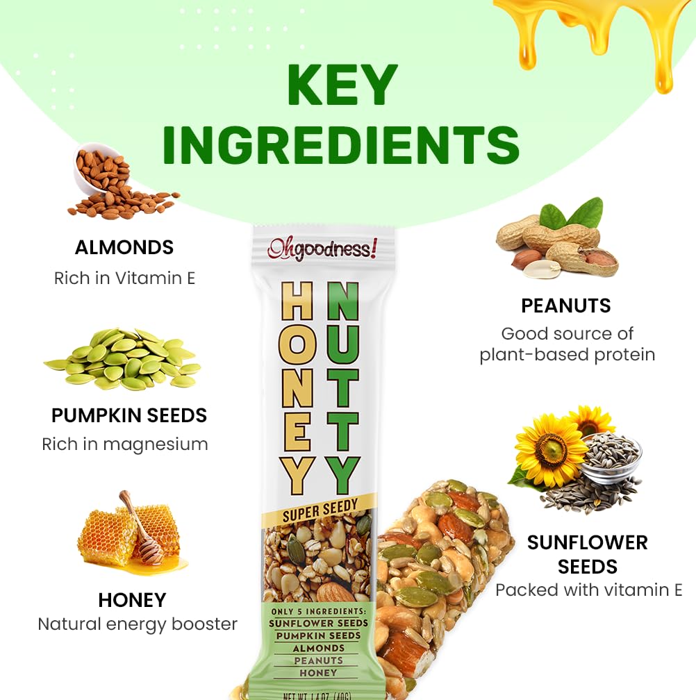 Oh Goodness! Honey Nutty-Nut Bars 16 Pack. All Natural, No Preservatives, No Artificial Flavors, Non GMO, Kosher, Honey Sweetene