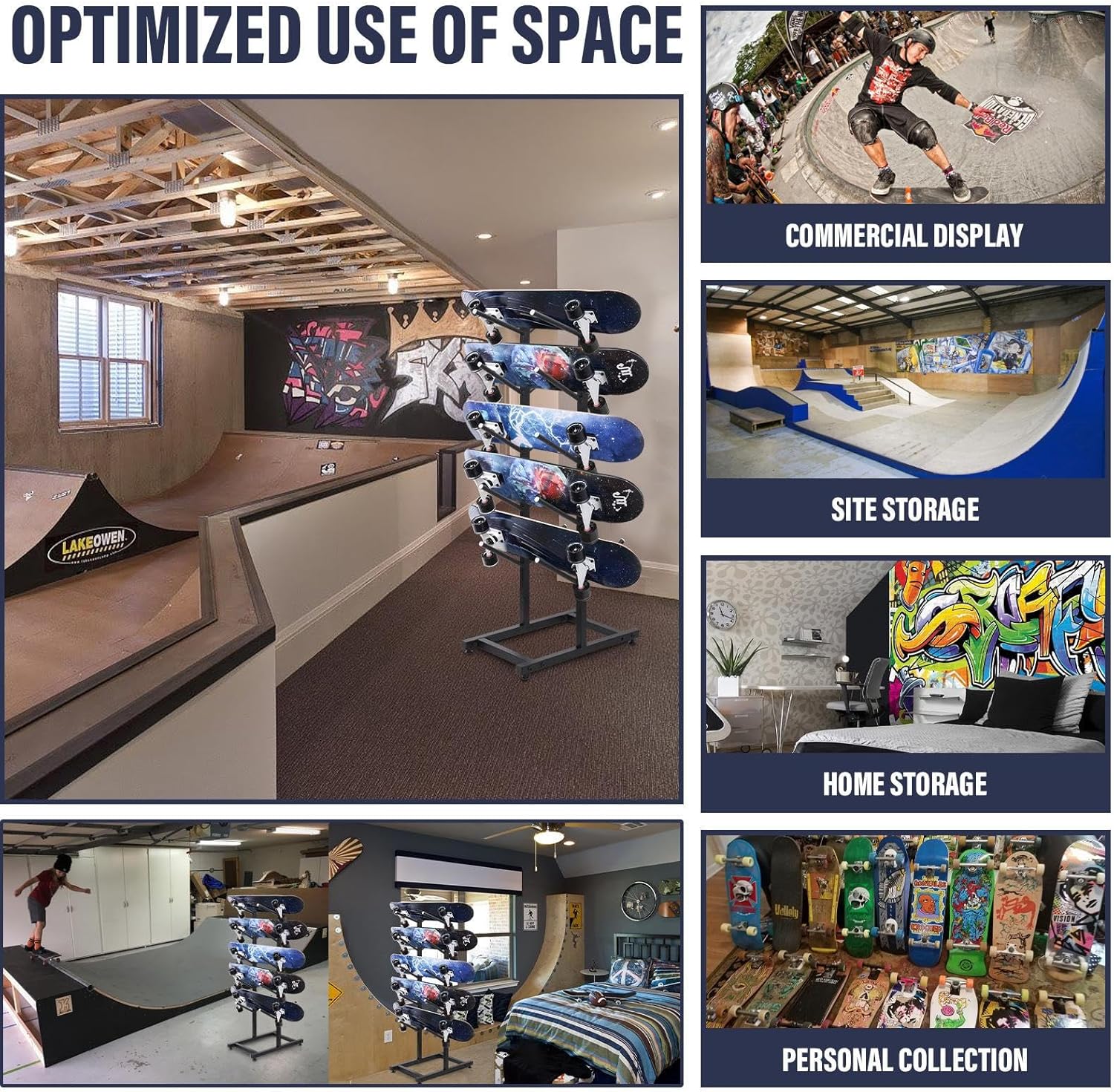 Organize your snowboards with ease using our snowboard storage rack. Keep your items orderly and safe in a beautiful and stable display environment. The easy matching design is also perfect for storing yoga mats.Specifications:Product name: skateboard rackProduct size: about 110x30x50cm/43.31x11.81x19.69 inchesProduct net weight: 3800g/8.3lbsPackaging size: about 113x55x7cm/44.49x21.65x2.76 inchesPackaging weight: 5000g/11lbsMaterial: IronLayers: double-sided 5 layersMaximum load of a single layer: 75kg/165lbsPacking list:Framework x 2Fixed rod x 3Foot pad x 4Wrench x 1Notes:1. Due to different lighting and screen settings, the item color may be slightly different from the picture.2. Due to different manual measurements, please allow a 1-2cm difference in size.